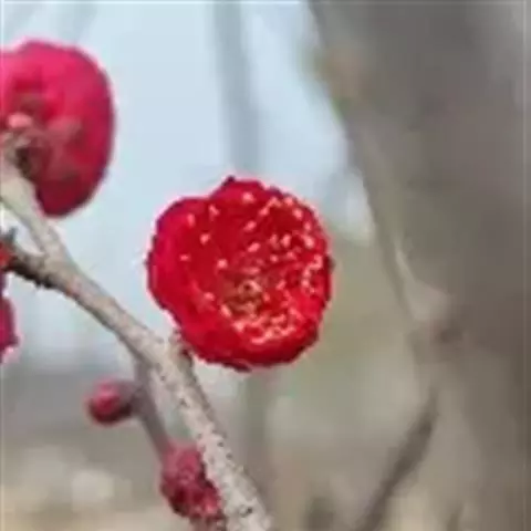 朱砂梅,俗称骨里红,为真梅系直脚梅类,枝条直伸或斜展,不下垂成拱形也不弯曲。属蔷薇科李属植物,…