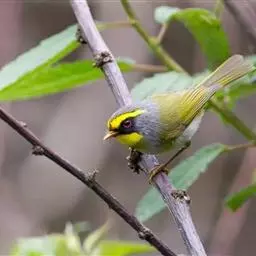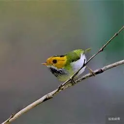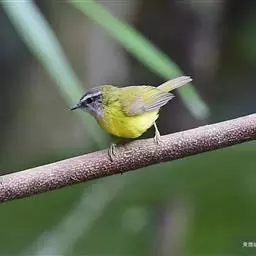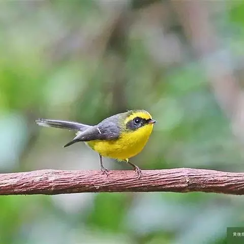 黑脸鹟莺:体长10厘米,是有特色的体小而多彩的莺鸟。粗眉纹,颏、喉及尾下覆羽黄色,脸罩黑,…
