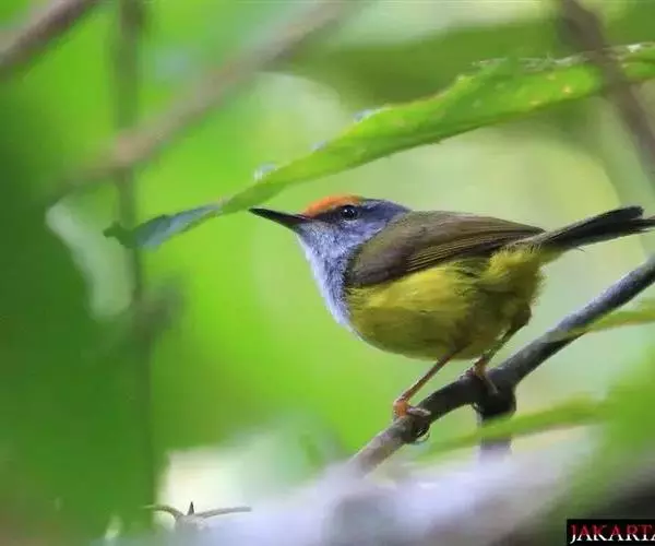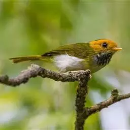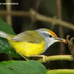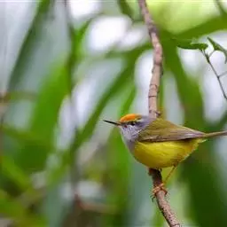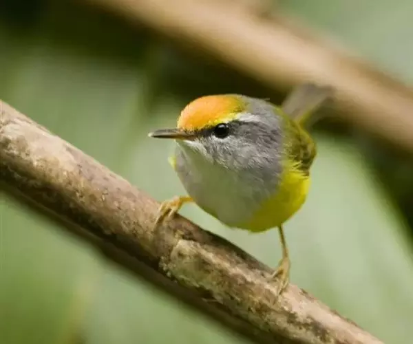 金头伪缝叶莺:体长10-12厘米,是一种体型小的棕顶冠、黄色腹森林莺类。头顶亮黄色,具明显的黄色眉…