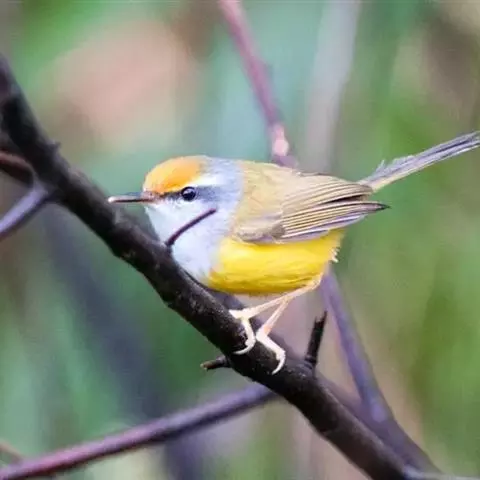 金冠地莺:形态与灰腹地莺相似,上体橄榄绿,前额至头顶渲染亮金黄色;下体几乎纯暗石板灰色,…