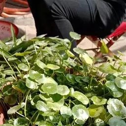 金鱼吊兰在温室内栽培,通常用多孔花盆和泥炭藓、蕨根、树皮块等基质,以利根系排水和通气良好。家庭居室中为防止浇水时漏水,用一个圆形、美观的盆钵,选排水良好的粗粒石块铺盆底,再加入少量腐叶土与珍珠岩混合作培养土,选择几株根系充实、饱满的金鱼花枝条,均匀地分栽在盆四周的培养土内,并使其倒向盆沿,再填满培养土,至此定植完毕。可在盆土中加入适量缓效肥,当新枝长到一定长度,就会顺着盆钵四周边沿垂吊下来,观赏效果颇佳。每当盛花期,朵朵红色的小花,好似一条条金鱼在碧波中跳跃,尤为奇丽。当新枝长到一定长度时,可进行摘心,使披散、下垂的株型,更加匀称、美观。