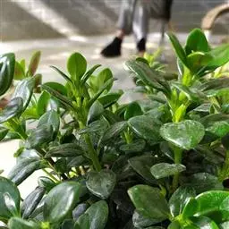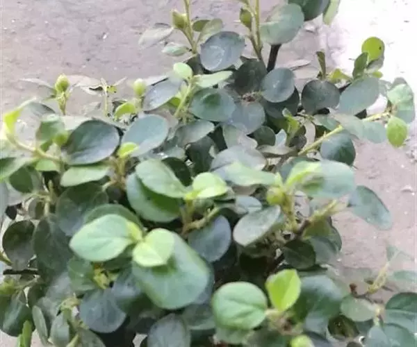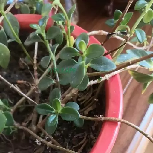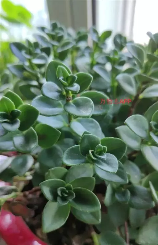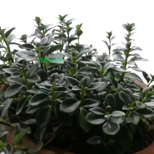 茎斜升,长20~40㎝,嫩茎绿色,老茎红褐色; 单叶,对生,卵形,长约3~4㎝,先端尖,肉质,叶面浓绿色,背面靠主脉处红色.