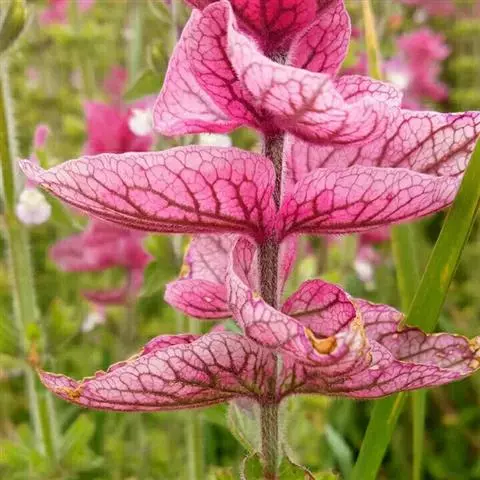 彩苞鼠尾草为唇形科、鼠尾草属一年生草本,株型直立,叶对生长椭圆形,色灰绿,叶表有凹凸状织纹,有香味,…