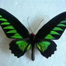 翠叶红颈凤蝶是凤蝶科红颈凤蝶属的一种大型蝴蝶,该物种共有11个亚种。因其脖子上有一圈红色的绒毛,…