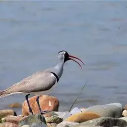 灰头麦鸡是鸻形目鸻科麦鸡属鸟类,繁殖期头、颈及胸灰色;胸部和腹部之间有黑色胸带分隔;背部及两翼大部分覆羽褐色;腹部和腰部白色;尾羽基部及边缘白色,近末端有黑色斑块。非繁殖期头颈部染褐色,颏及喉部白色,胸带不明显。初级飞羽黑色,其余飞羽及与之相邻的部分覆羽白色;虹膜红褐色,眼圈黄色;嘴尖段黑色,后段黄色;腿和脚黄色。灰头麦鸡分布于欧亚大陆及非洲北部、中南半岛以及太平洋诸岛屿,在中国分布于东南沿海地区。栖息于丘陵、平原地区河流、湖泊和沼泽等水体附近。繁殖期成对活动,其余时间集群活动。主要啄食甲虫、蝗虫、蚱蜢等昆虫,也吃水蛭、螺、蚯蚓、软体动物和植物叶片及种子。繁殖期为5—7月,1年繁殖1窝,每窝产卵4枚。灰头麦鸡被列入中国国家林业局发布的《国家保护的有益的或者有重要经济、科学研究价值的陆生野生动物名录》。