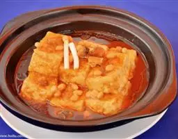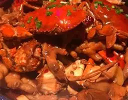 肉蟹煲又名缅甸肉蟹、缅甸黑蟹、缅甸石蟹,是一道由肉蟹、鸡爪、辣酱做成的美食。肉蟹原产于缅甸、孟加拉一带海中,味道鲜、嫩,蟹肉味浓香。可与生姜搭配来降低寒气。