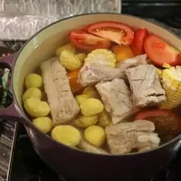 配料:葱段、姜片、土豆块、鲜藕片、胡椒粉、高汤、味精、油、各适量。
