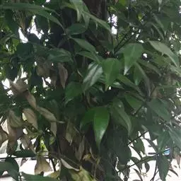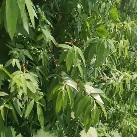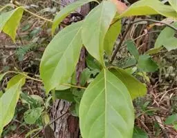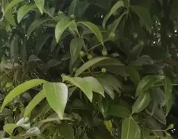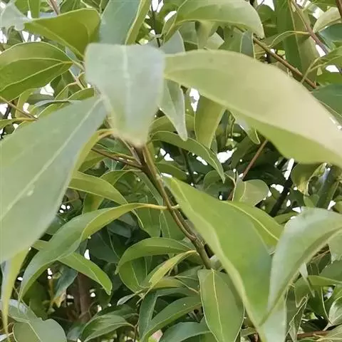 3、细叶香桂,常绿高大乔木。树皮灰色,小枝密生绢状毛。叶在新枝对生,在老枝互生,革质,卵状椭圆形至披针形,长4-14cm,宽1-6cm,先端长渐尖,基部楔形,全缘,上面绿色,有光泽,下面密生绢状短柔毛,具离基3出脉,在背面显着隆起。圆锥花序腋生;总花梗和花梗密生白色短柔毛;花淡黄色,花被6裂,基部筒状;雄蕊、雌蕊与前种相似。浆果椭圆形,基部具宿存萼筒,全缘。花期5-6月。果期6-12月。