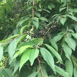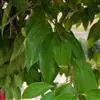 4、川桂,常绿高大乔木。枝紫灰褐色,光滑。单叶互生或近对生;革质,卵形至长卵形,长8-15cm,宽3-5cm,先端渐尖而顶点钝,基部楔状或钝形,全缘,上面绿色,无毛,下面微被白粉,幼时有白色绢状毛,后渐脱落;具离基3出脉,在下面不隆起。花小,白色,成圆锥花序或伞形花序;总花梗细长,长1-6cm,光滑或微被毛,小花梗丝状,先端渐粗,具细毛;花被6裂,内外皆疏生绢状细毛;雄蕊与雌蕊均与前种相似。浆果基部具截形之宿存萼筒,全缘。花期5-6月。果期7-10月。