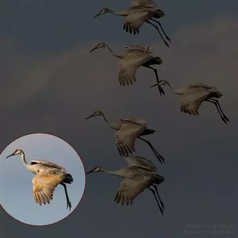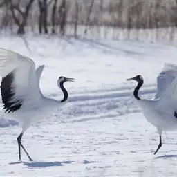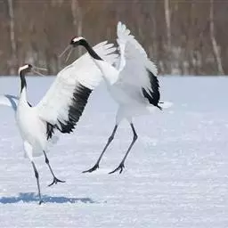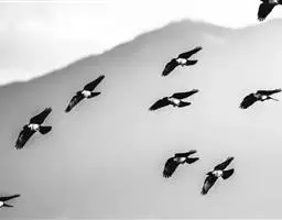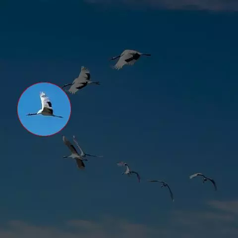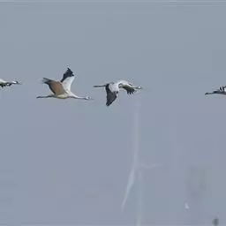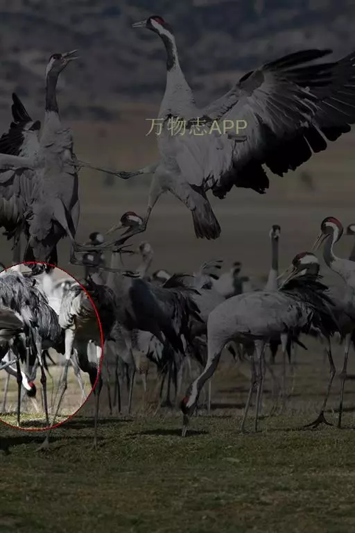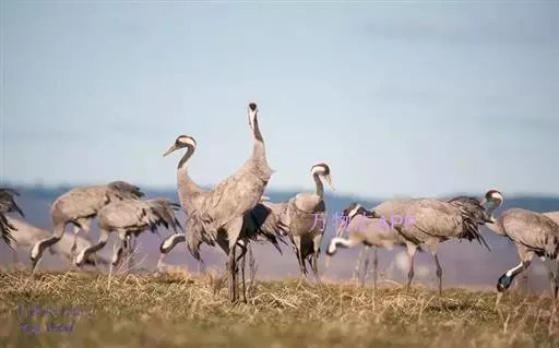 灰鹤 灰鹤成5-10余只的小群活动,迁徒期间有时集群多达40-50只,在冬天越冬地集群个体多达数百只。性机警,胆小怕人。活动和觅食时常有一只鹤担任警戒任务,不时的伸颈注视四周动静,发现有危险,立刻长鸣一声,并振翅飞翔,其他鹤亦立刻齐声长鸣,振翅而飞。飞行时排列成‘V’字或‘人’字形,头、颈向前伸直,脚向后直伸。栖息时常一只脚站立,另只脚收于腹部。