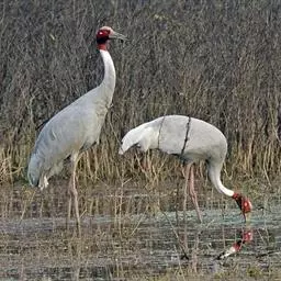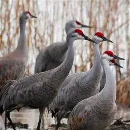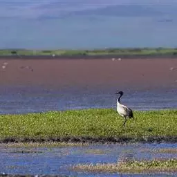 灰鹤 栖息于开阔平原、草地、沼泽、河滩、旷野、湖泊以及农田地带;其中尤为喜欢以富有水边植物的开阔湖泊和沼泽地带。常栖息于沼泽草甸,沼泽中多草丘和水洼地,水生植物有水麦冬、水毛茛和薹草等20多种;在中国黑龙江省林甸县灰鹤栖息在芦苇沼泽,有芦苇、狭叶甜茅、菰、小猩藻等植物;在迁徙途中的停歇地和越冬地,主要栖息在河流、湖泊、水库或海岸附近,常到农田中觅食,回到河漫滩、沼泽地或海滩夜宿,例如,在山西省河津县黄河滩越冬的灰鹤,白天主要在作物地中觅食休息,以花生地中最多,夜间在距河岸1-2千米处四面环水的沙滩或荒草丛生的小岛上过夜,但从未见到灰鹤在耕地内集群过夜。
