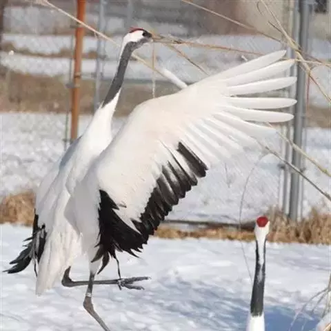 丹顶鹤:是鹤科、鹤属的一种大型涉禽,体长120-160厘米。颈、脚较长,通体大多白色,头顶鲜红色,…
