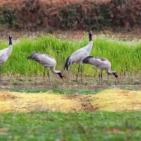 灰鹤 该物种分布范围广,不接近物种生存的脆弱濒危临界值标准(分布区域或波动范围小于20000平方公里,栖息地质量,种群规模,分布区域碎片化),种群数量趋势稳定,因此被评价为无生存危机的物种。