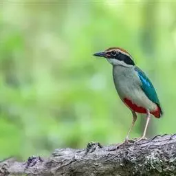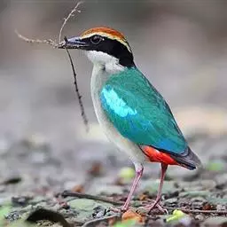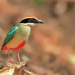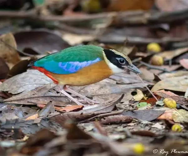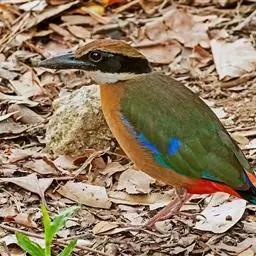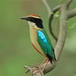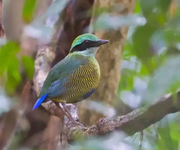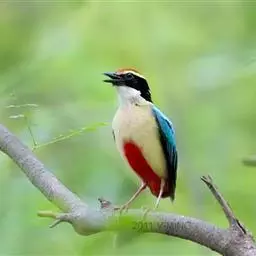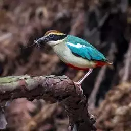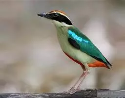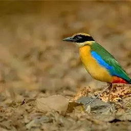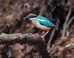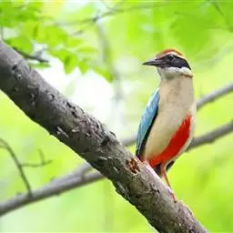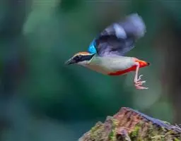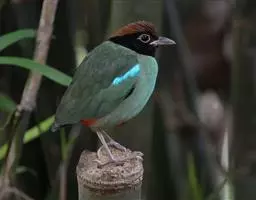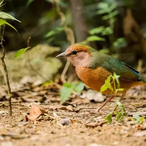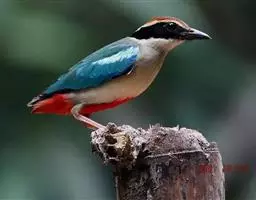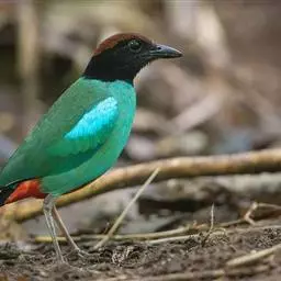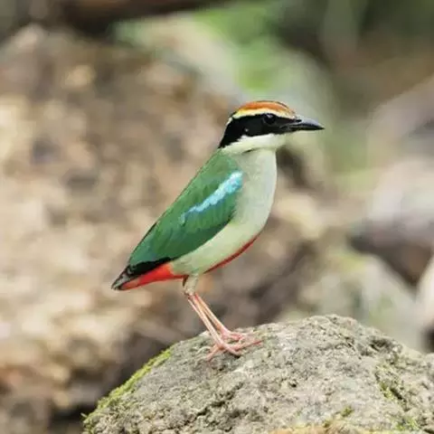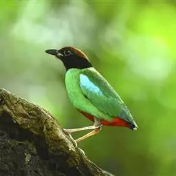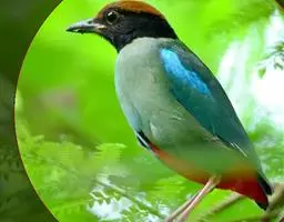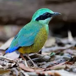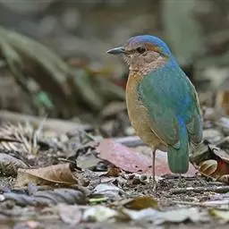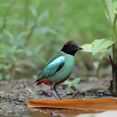 蓝翅八色鸫(学名:Pitta brachyura)是雀形目八色鸫科的鸟类。体长17-20厘米,体重类约48-70克,体型圆胖,尾短,腿长,以身体具有红、绿、蓝、白、黑、黄、褐、栗等鲜艳夺目,丰富艳丽的色彩而得名,是很有观赏价值的鸟类。主要栖息于海拔200 米以下的平坝和丘陵落叶很厚的各种类型的树林中,也见于林缘溪流边的灌丛和小树上,田坝区的榕树和村寨边的小树上,以及竹林等环境。常在森林底层或低植被中找食无脊椎动物。叫声简单哀婉。主要以甲虫、白蚁、鳞翅目、鞘翅目的昆虫和蚯蚓、蜈蚣等小动物为食。分布于中国西南部、东南亚;越冬于马来半岛、苏门答腊及婆罗洲。