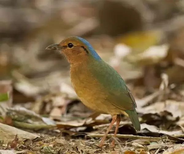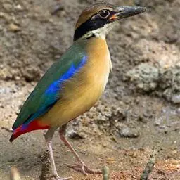 蓝翅八色鸫是一种小型的鸟,嘴强,长而侧扁,颈部短,鸣管内肌两对附着于支气管半环的中部。尾羽很短,腿特长而坚强,表面平滑。