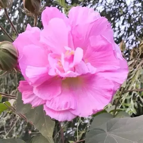 海滨木槿是锦葵科木槿属植物,落叶小乔木,株高3-5米,胸径20厘米,扁球形树冠,枝叶繁盛。…