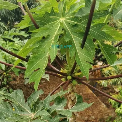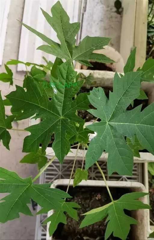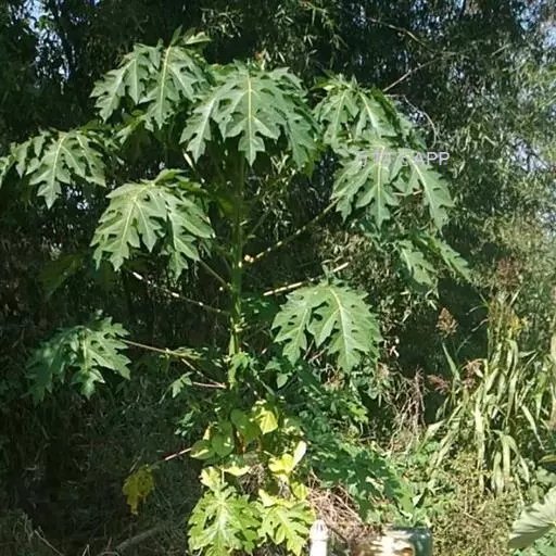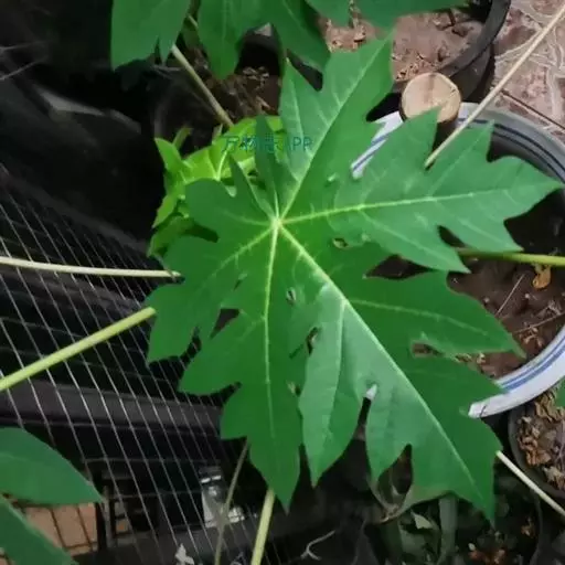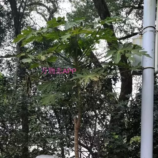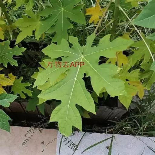 叶大,聚生于茎顶端,近盾形,直径可达60厘米,通常5-9深裂,每裂片再为羽状分裂;叶柄中空,长达60-100厘米。 番木瓜