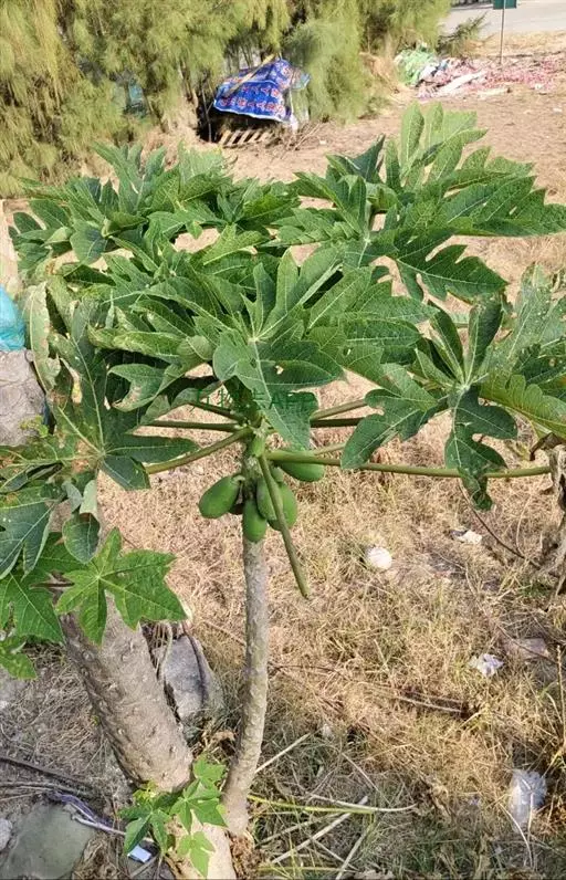 防风:番木瓜茎杆较高,组织松脆,根浅生,结果后树身重,容易风折,并且在桂南一带易受台风影响,注意防风。除了采用矮生品种外,以尼龙绳或竹、木支撑加固。或种植时采用45°,顺风倾斜种植,种植后顺斜栽方向每隔10~15d拉1次,共拉3~4次,可使植株高度降低50~60cm,增强抗风性。