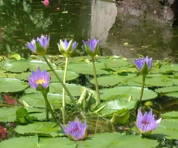 在中国荷文化史上,盆荷这种形式出现之初只是被用于私家庭院观赏。盆栽和池栽相结合的布置手法,提高了盆荷的观赏价值,在园林水景和园林小品中经常出现。睡莲水石盆景是一种新的盆景。它是睡莲盆栽与水石盆景的有机结合,既体现山石的刚毅挺拔,又显示出娇艳妩媚。