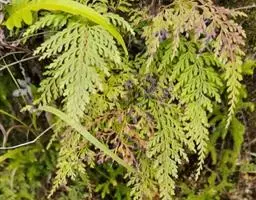 孢子成熟期,选择阴天气候,在母树上将侧枝上两侧的小叶片剪下,晾晒干叶片,孢子与叶片分离,再将叶片和孢子装入筛内筛取孢子粒和黑黄色粉沫,将黑黄色粉沫和孢子粒一并收存备用;