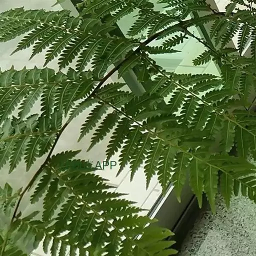叶片大,长矩圆形,长1-2米,宽0.4-1.5米,三回羽状深裂;羽片17-20对,互生,基部一对缩短,长约30厘米,中部羽片长40-50厘米,宽14-18厘米,长矩圆形,二回羽状深裂;小羽片18-20对,基部小羽片稍缩短,中部的长9-12厘米,宽1.2-1.6厘米,披针形,先端渐尖而有长尾,基部宽楔形,无柄或有短柄,羽状深裂;裂片18-20对,斜展,基部裂片稍缩短,中部的长约7毫米,宽约4毫米,镰状披针形,短尖头,边缘有锯齿;叶脉在裂片上羽状分裂,基部下侧小脉出自中脉的基部;叶纸质,干后绿色;羽轴、小羽轴和中脉上面被糙硬毛,下面被灰白色小鳞片。