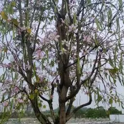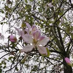 洋紫荆:落叶乔木;树皮暗褐色,近光滑;幼嫩部分常被灰色短柔毛;枝广展,硬而稍呈之字曲折,无毛。叶近…