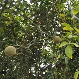 沙田柚,芸香科柑橘属乔木。树干较高,枝叶繁茂,嫩枝扁且有棱,叶质颇厚且为浓绿色,…