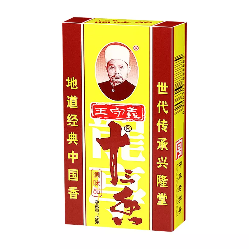 配方5:桂皮45,花椒18,小茴10,八角15,香叶3,干姜5,砂仁3,肉蔻1。