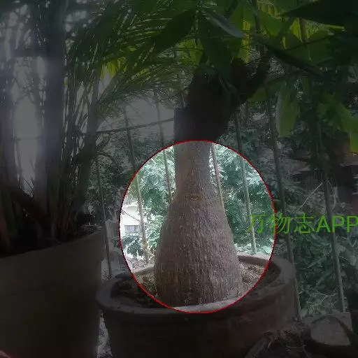 瓶树,原产南美,别名也叫纺锤树Cavanillesia-arborela,属,外形与本植物相似,是不同植物在类似生态环境上相同适应造成的。纺锤树生长在南美洲的巴西高原上,远远望去很像一个个巨型的纺锤插在地里。纺锤树有30米高,两头尖细,中间膨大,最粗的地方直径可达5米,里面贮水约有2吨。雨季时,它吸收大量水分,贮存起来,到干季时来供应自己的消耗。