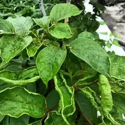 常绿小灌木。株高约50~120厘米,枝条暗红色 。叶互生,圆形或阔卵形,全缘。白色或有白色斑纹。嫩…