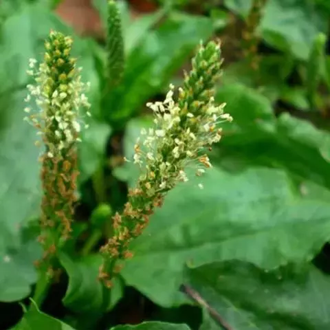 北美车前 车前草果穗下部果实外壳初呈淡褐色、中部果实外壳初呈黄色、上部果实已收花时,即可收获。车前草抽穗期较长,先抽穗的早成熟,所以要分批采收,每隔3-5天割穗1次,半个月内将穗割完。宜在早上或阴天收获,以防裂果落粒。用刀将成熟的果穗剪下,在晒场晒穗裂果、脱果。晒干后搓出种子,簸净杂质。种子晒干后在干燥处贮藏。