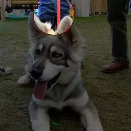 长、强壮、口吻宽阔,但很文雅。整个脸的外观呈椭圆形,面部没有表情 牛头梗 或有凹痕。侧面观,其颅顶部到鼻端呈微微向下的凹陷。耳间和额头的部位平整。鼻端到双眼的距离大于眼到头顶的距离。下颔长而且轮廓分明。唇——整洁而紧闭,牙齿——对齐或呈剪状咬合,剪状咬合的犬上齿在下齿之前或与下齿对合整齐。牙齿应该健全,强壮有力,且规则。耳——小而薄的耳朵紧紧挨着。当耳朵向上时,两只耳朵能完全直立。眼——眼睛下陷,颜色深,一双歪着的小三角眼闪烁着敏锐的光;两眼间距很近,位于头的上部。蓝眼睛不符合标准。鼻子——鼻黑,鼻梁自然弯曲到鼻端。