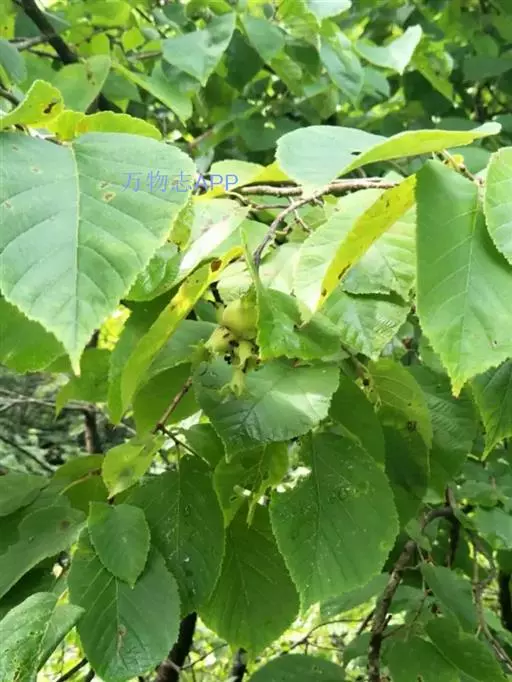 乔木,高可达20米;树皮灰褐色,纵裂;枝条灰褐色,无毛;小枝褐色,密被长柔毛和刺状腺体,很少无毛无腺体,基部通常密被淡黄色长柔毛。叶椭圆形、宽椭圆形或宽卵形, 长8-18厘米,宽6-12厘米,顶端骤尖至短尾状,基部心形,两侧显著不对称,边缘具不规则的钝锯齿,上面无毛,下面沿脉疏被淡黄色长柔毛,有时具刺状腺体,侧脉7-11对;叶柄长1-2.5厘米,密被淡黄色长柔毛及刺状腺体。雄花序2-8枚排成总状,长2-5厘米;苞鳞三角形,锐尖,顶端具1枚易脱落的刺状腺体。果2-6枚簇生成头状,长2-6厘米,直径1-2.5厘米;果苞管状,于果的上部缢缩,较果长2倍,外面具纵肋,疏被长柔毛及刺状腺体,很少无毛和无腺体,上部深裂,具3-5枚镰状披针形的裂片,裂片通常又分叉成小裂片。坚果球形,长1-2厘米,无毛。 花期4~5月,果期9~10月。