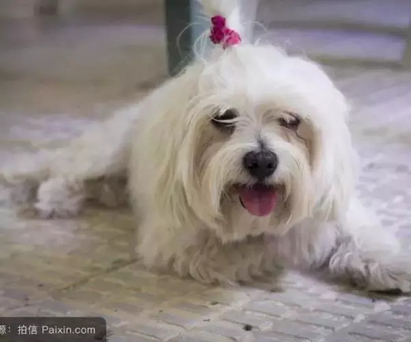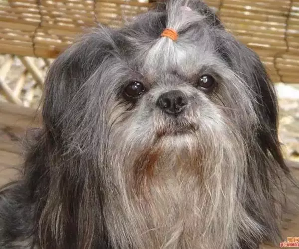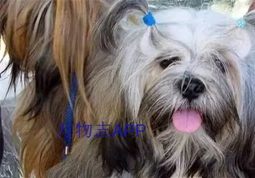 拉萨犬(Chrysanthemum)。拉萨犬原产于青藏高原,形体外貌如狮子,毛色有金黄色、朱砂色、灰色、花色和黑、白、茶等各种颜色,被毛长而丰富,特别是头部、耳部、尾部被毛最厚实,可拖至地面。善有胡须和长的颜鬓,尾上翘,呈菊花形尾。现在是非常理想的家庭犬。拉萨犬又被称为“驱魔圣犬”。这种犬一般体重6~7kg,体高25~28cm,寿命较长,18~20年。拉萨犬虽然其体形不大,天性不凶悍,但一直是西藏达赖喇嘛的护卫犬。这种犬不但韧性很强,而且听力相当敏锐。它的英文名的原意是“宛如山羊一般”,而山羊在西藏的神话中扮演着特殊的角色。