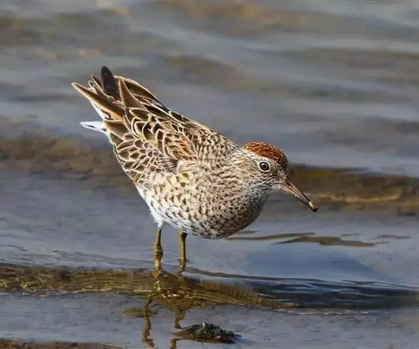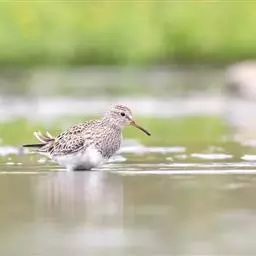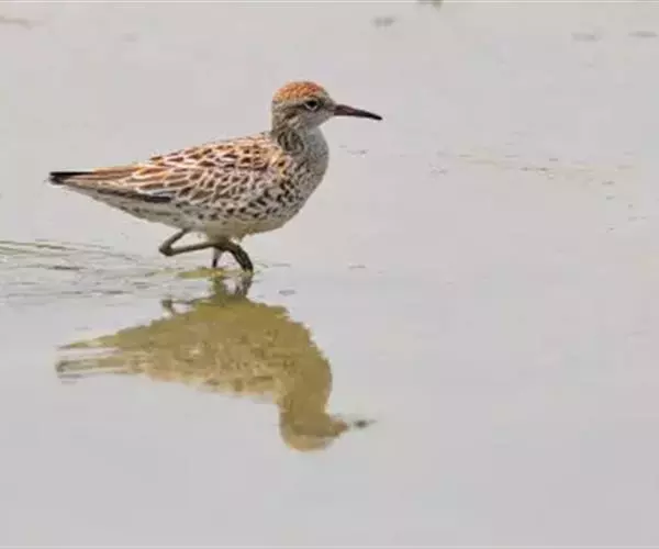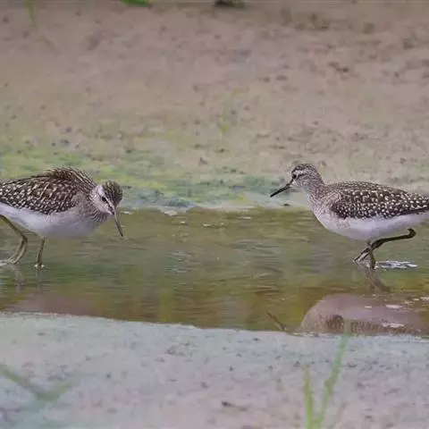 林鹬体长约20厘米,体型略小,纤细,褐灰色,腹部及臀偏白,腰白。上体灰褐色而极具斑点;眉纹长,…