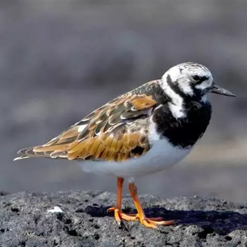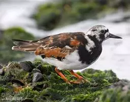 三趾鹬夏羽额基、颏和喉白色,头的余部、颈和上胸深栗红色,具黑褐色纵纹。下胸、腹和翅下覆羽白色。翕、肩和三级飞羽主要为黑色,具棕包和灰色羽缘和白色V形斑及白色尖端。中覆羽和大覆羽灰色,具淡灰色或白色羽缘。小覆羽和初级覆羽黑色。飞羽黑色,其上有宽阔的白色翼带。.内侧初级飞羽外侧具白色羽缘。腰和尾上覆羽两侧白色,中央黑色。中央尾羽黑褐色,两侧淡灰色。