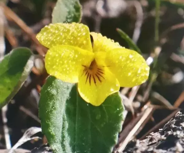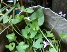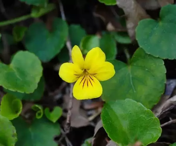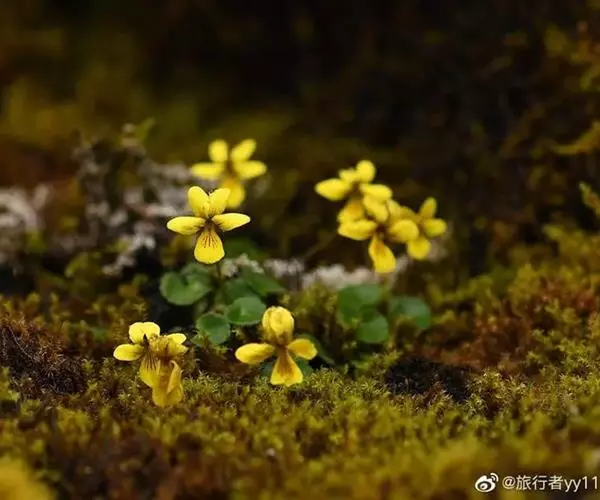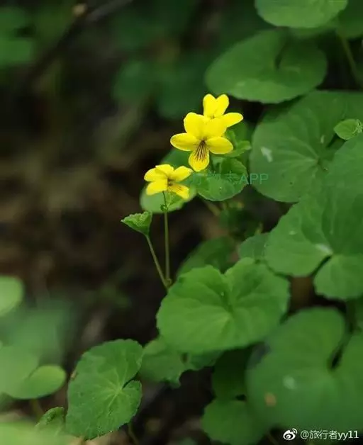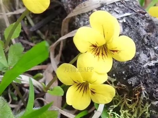 双花堇菜又名:孪生堇菜,短距黄花堇菜。多年生草本。根状茎细或稍粗壮,垂直或斜生,具结节,有多数细根。地上茎较细弱,高10-25厘米,2或数条簇生,直立或斜升,具3(-5)节,通常无毛或幼茎上被疏柔毛。基生叶2至数枚,具长4-8厘米的长柄,叶片肾形、宽卵形或近圆形,长1-3厘米,宽1-4.5厘米,先端钝圆,基部深心形或心形,边缘具钝齿,上面散生短毛,下面无毛,有时两面被柔毛;茎生叶具短柄,叶柄无毛至被短毛,叶片较小;托叶与叶柄离生,卵形或卵状披针形,长3-6毫米,先端尖,全缘或疏生细齿。花黄色或淡黄色,在开花末期有时变淡白色;花梗细弱,长1-6厘米,上部有2枚披针形小苞片;萼片线状披针形或披针形,长3-4毫米,先端急尖,基部附属物极短,具膜质缘,无毛或中下部具短缘毛;花瓣长圆状倒卵形,长6-8毫米,具紫色脉纹,侧方花瓣里面无须毛,下方花瓣连距长约1厘米;距短筒状,长2-2.5毫米;下方雄蕊之距呈短角状;子房无毛,花柱棍棒状,基部微膝曲,上半部2深裂,裂片斜展,其间具明显的柱头孔。蒴果长圆状卵形,长4-7毫米,无毛。花果期5-9月。