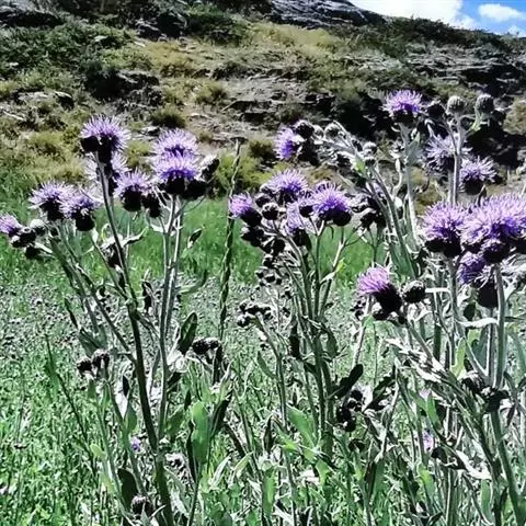 紫苞雪莲为菊科、风毛菊属植物。生于山坡草地、山地草甸、林缘、盐沼泽,…