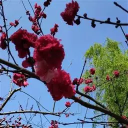 美人梅是蔷薇科李属的落叶小乔木。叶互生,呈广卵形或卵形,紫红色;花呈淡紫红色,半重瓣或重瓣,花叶同放,…