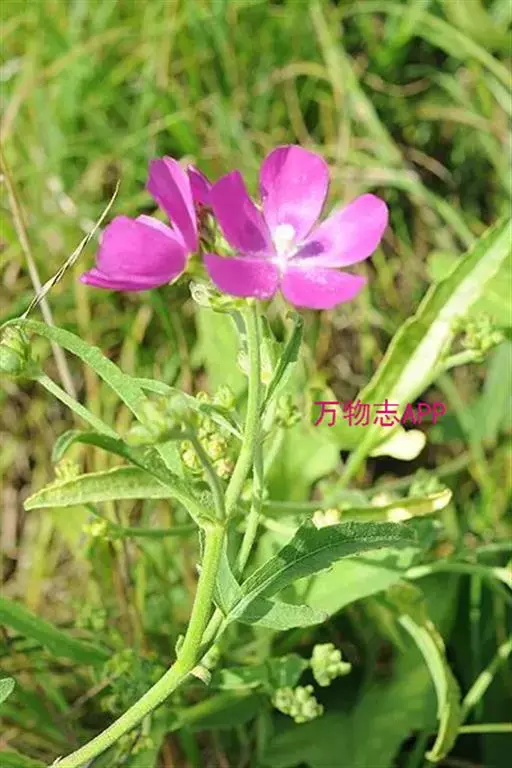 麦仙翁(学名:Agrostemma githago L.)是石竹科麦仙翁属植物。一年生草本,高60-90厘米,全株密被白色长硬毛。茎单生,直立,不分枝或上部分枝。叶片线形或线状披针形。花单生,直径约30毫米,花梗极长。蒴果卵形;种子呈不规则卵形或圆肾形。花期6-8月,果期7-9月。