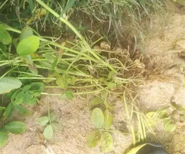 落花生(学名:Arachis hypogaea Linn.):蔷薇目、豆科,落花生属的一年生草本植物。根部有丰富的根瘤;茎和分枝均有棱,叶纸质对生;叶柄基部抱茎,卵状长圆形至倒卵形,先端钝圆形,两面被毛,边缘具睫毛;叶脉边缘互相联结成网状;花长约8毫米;苞片披针形;花冠黄色或金黄色,旗瓣开展,翼瓣与龙骨瓣分离,长圆形或斜卵形,花柱延伸于萼管咽部之外,荚果膨胀,荚厚,6-8月花果期。