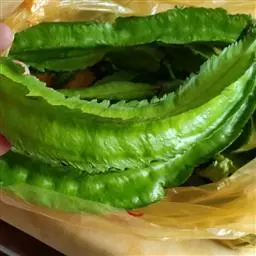 荚果长2-5厘米,宽1-1.3厘米,膨胀,荚厚,种子横径0.5-1厘米。 荚果果壳坚硬,成熟后不开裂,室间无横隔而有缢缩(果腰)。每个荚果有2-6粒种子,以2粒居多,多呈普通型、斧头型、葫芦型或茧形。每荚3粒以上种子的荚果多呈曲棍形或串珠型。百粒重一般50-200克。果壳表面有网络状脉纹。种子三角形、桃形、圆柱形或椭圆形,一般底端钝圆或略平,梢端胚根突出。种皮有白、粉红、红、红褐、紫、红白或紫白相间等不同颜色。子叶占种子总重量的90%以上。胚芽隐藏在两片肥厚的子叶中间,由主芽和两个子叶节侧芽组成。 花果期6-8月。