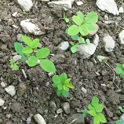 ⑵龙生型。植株匍匐,交替开花,多毛茸,有花青素,荚果有龙骨(背脊)和勾嘴,曲棍状。果壳网纹深,果针脆弱易断。