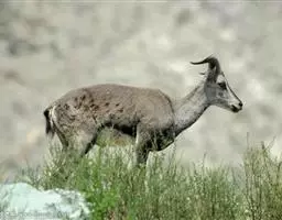 盘羊:雄性肩高可达120厘米,体重可达200千克。雄性的弯角粗大,长达1米以上,向下扭曲呈螺旋状,…