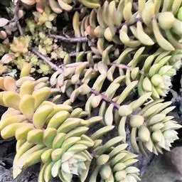 玉缀,别名翡翠景天景天科景天属常绿或半常绿多肉植物,植物匍匐下垂,翠绿色。叶小,多汁,纺锤形,…