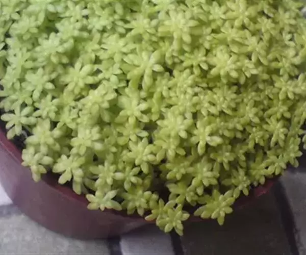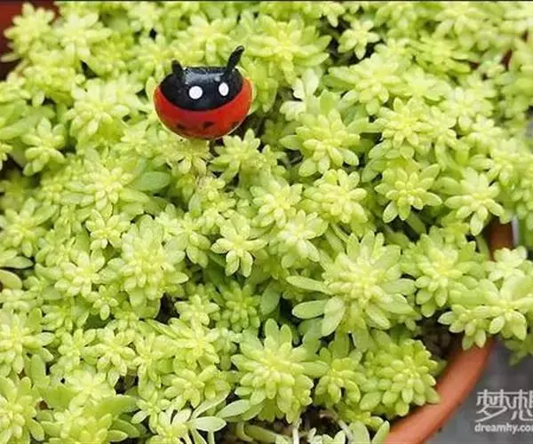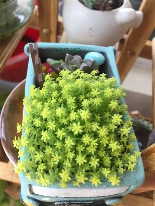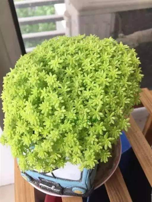 金万年草是景天科景天属植物,光照充足时金黄的颜色非常靓丽是作为花盆边缘的点缀的很好选择。黄金万年草据说原种叶片浓绿色,本种是叶片黄化的园艺品种,所以会出现返祖的现象。