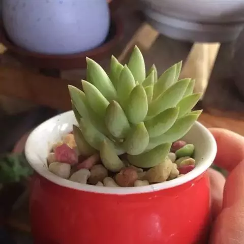 红霜,景天科景天属多肉植物,小型多肉植物,易群生,跟白霜相似,但叶片较大较薄,白粉不明显,叶片容易晒红。红霜跟白霜一样也有点香气。