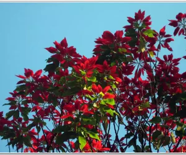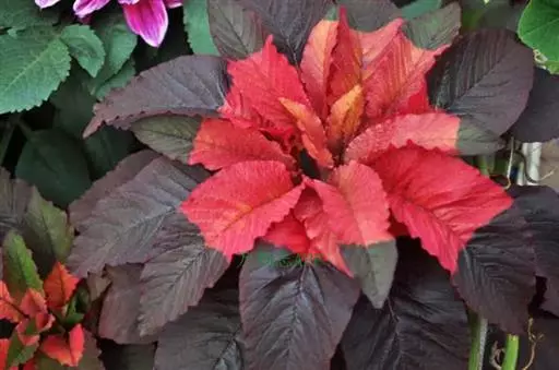 雁来红幼苗很像苋菜,但到了深秋,其基部叶转为深紫色,而顶叶则变得猩红如染,鲜艳异常。由于叶片变色正值“大雁南飞”之时,人们便给它取个美丽的名字——雁来红。