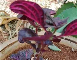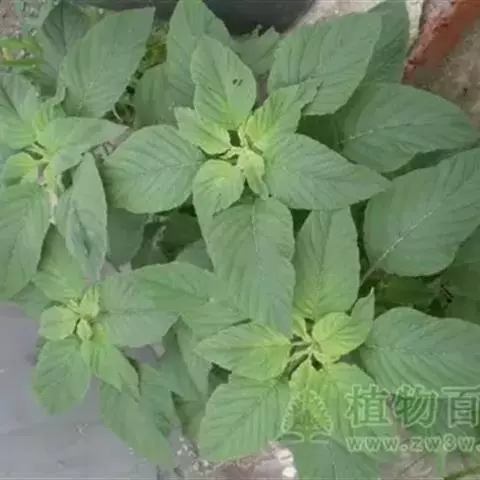 下部叶对生,上部叶互生,宽卵形、长圆形和披针形,长2-7.5厘米,顶端锐尖,基部渐狭或半抱茎,全缘,叶面有柔毛;原产地为亚洲热带地区。雁来红为苋科一年生草本植物,株高80—100厘米,茎直立,少分枝。叶互生,菱状卵形至披针形。花极小,穗状花序族生于叶腋间,种子黑色有光泽。原产印度。我国各地有栽培。