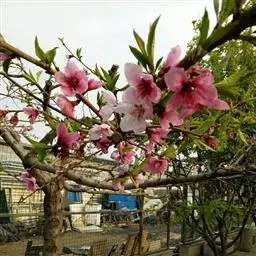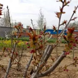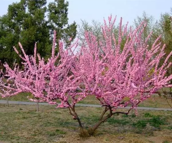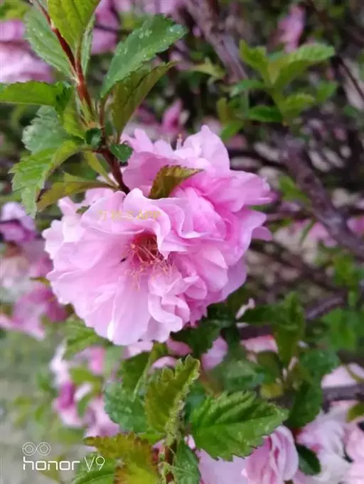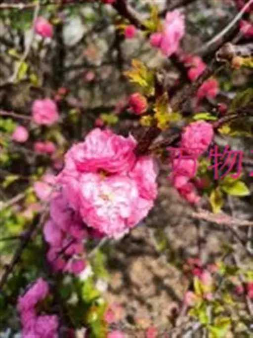 (3)半重瓣榆叶梅:粉红色花朵,半重瓣,花菩、花辨均在10片以上。植株的小枝呈红褐色,园林、庭院中栽培比较广泛。